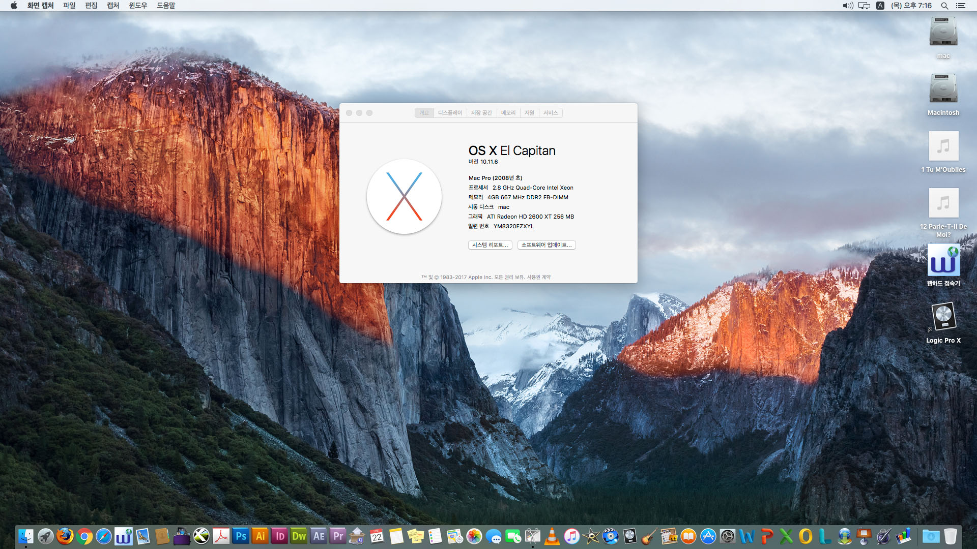 시스템은 엘캐피탄 10.11.6 깔려있습니다