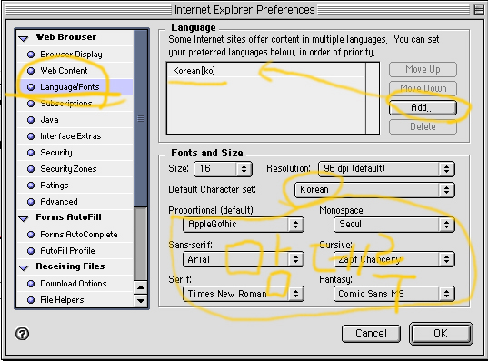 안녕하세요? 박노훈입니다. 발찍이 님께서 이미 설명을 해주셨네요. ^^ 조금 더 부연 설명을 드린다면, http://allmac.co.kr/m_view.php?ps_db=study&ps_boid=6&ps_page=2&ps_sele=&ps_ques=&ps_line=asc&ps_choi=&ps_divi= Web Content에 대한 설정까지도 해주신다면 사이트별로 게시판에서 한글이 깨지는 문제도 해결이 될 것입니다. 감사합니다.