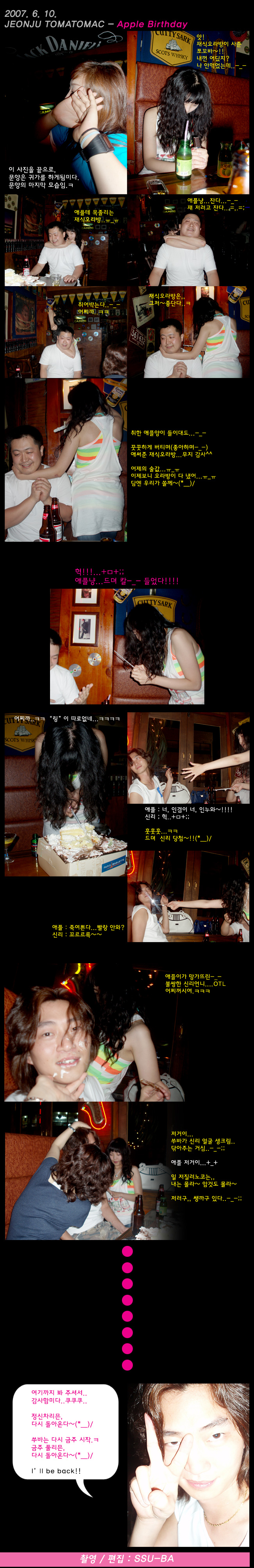 마지막 사진이 신리인 이유..+_+ (신리 얼굴인데, 대화창은 쑤바의 인사인 이유-_-라고 해야 하나?) 신리는... 너무 그지같은-_- 사진들만 올려서리..ㅋㅋ 지 생일빵이냐고 막 징징대길래...=,.=;; 마지막 사진은.. 이뿌게-_- 해서,, 라스트씬으로다가 장식.ㅋㅋㅋㅋ
