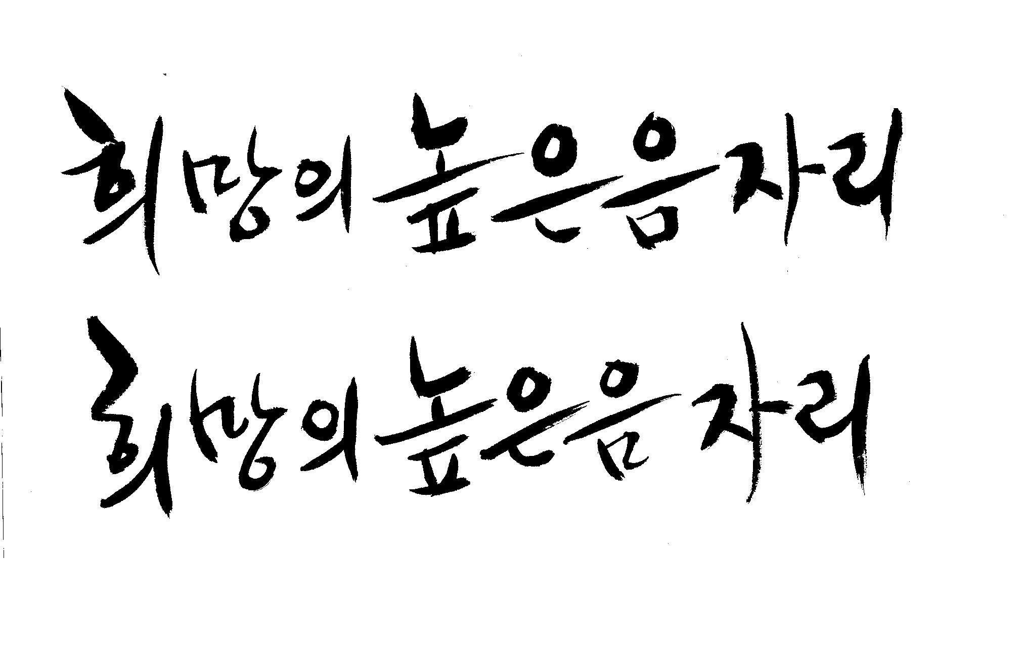 저도 캘리좀부탁이요 ^^;; 김철호 일반 0 6605 2009.01.14 10:59 > > > > > 희망의 높은음자리 > > > > 감사합니다 ^^ 꼭부탁드려욧 ㅎㅎㅎ > > > > 좋은 글이라서 신경썼는데 > 만족할 만큼 않나왔네요.. > 유용하게 쓰시길... >