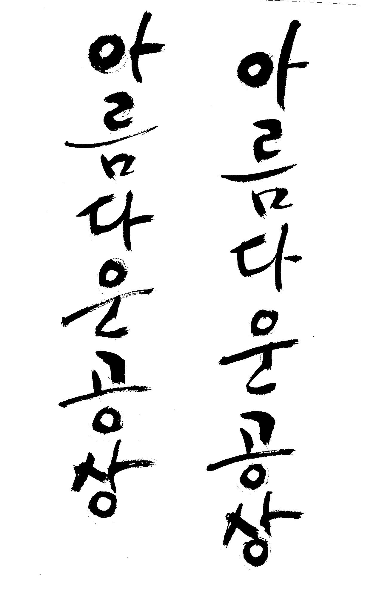 캘리부탁드려도 될까요?^^ 김철호 일반 0 7018 2009.01.14 21:43 > > > > > > > > > 안녕하세요 > > > 염치불구하고 부탁드릴려구요 > > > 제가 책표지를 맞게되었습니다. > > > 그래서 거기에 쓸캘리를 부탁하려고 합니다. > > > 제목은 "아름다운 공상"입니다. > > > (가로형,세로형 둘 다 해주시면 좋겠습니다.-희망사항) > > > 멋진 봇글씨로 부탁드립니다. > > > > > > 다들 추우신데 감기조심하시구요 > > > 이렇게 부탁드려도될지....조심스럽네요 > > > > > > > 유용하게 쓰세요... > > >